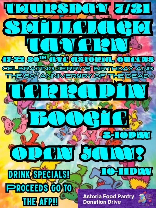 Jul 31 TERRAPIN BOOGIE Thursday, July 31, 2025 8:00 PM 11:00 PM SHILLELAGH TAVERN (map) Google Calendar ICS View Event →